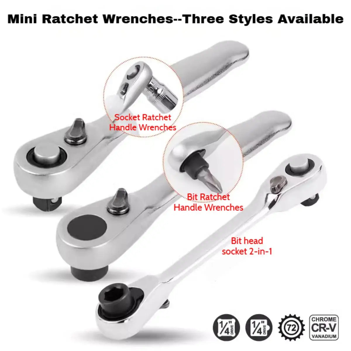 1/4" Mini Socket/ Mini Bit/ 2-in-1 Ratchet Handle Wrenches