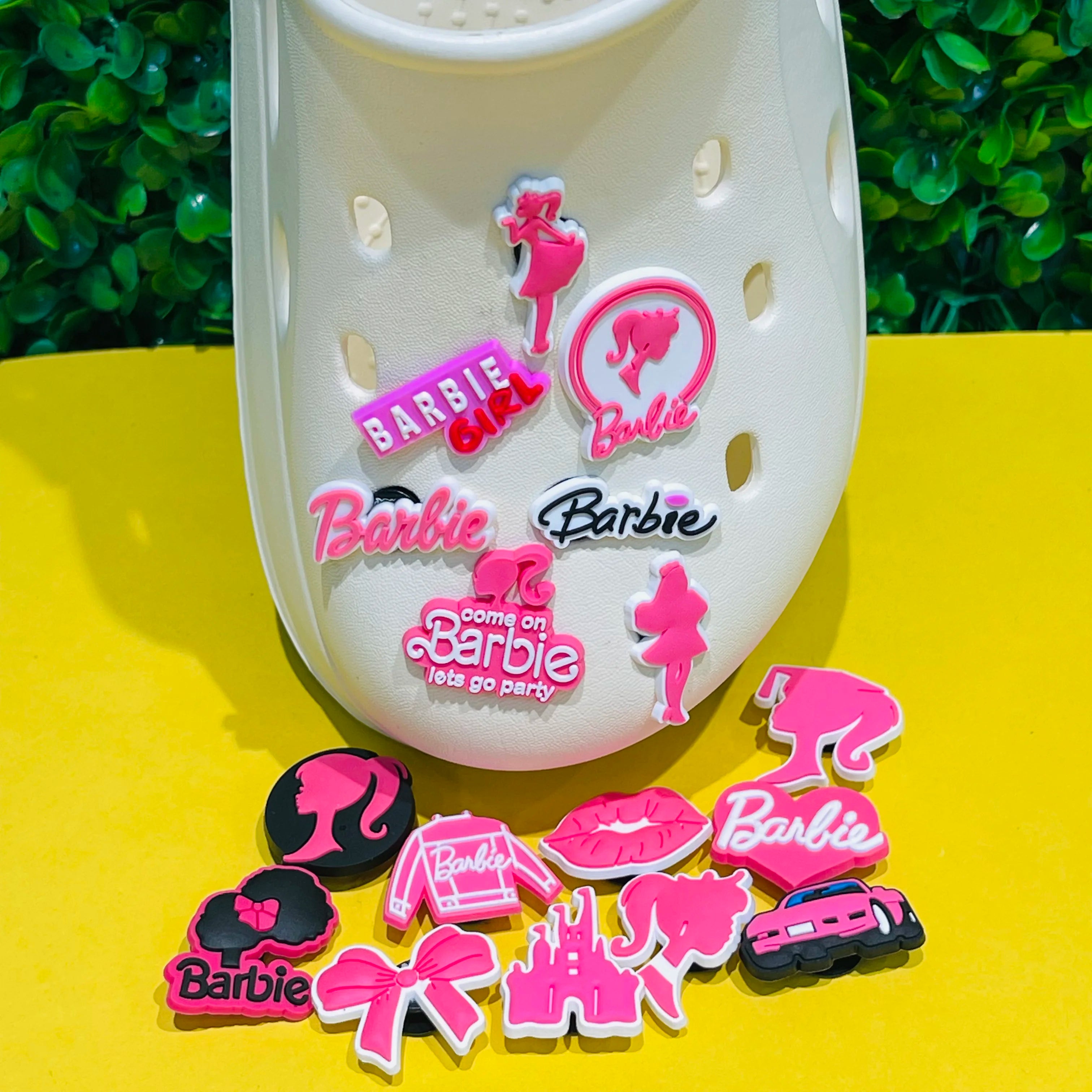 17PCS Cartoon Miniso Disney Barbie Girl Car Coat Bow Lips PVC Shoe
