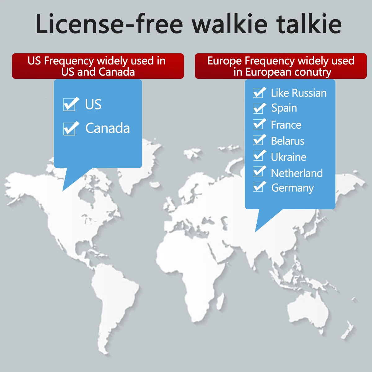 ▶PMR 446MHz : For European Countries such as Russia, Spain,France,Italy,Poland Netherlands,Ukraine,Belarus,England,Germany etc.