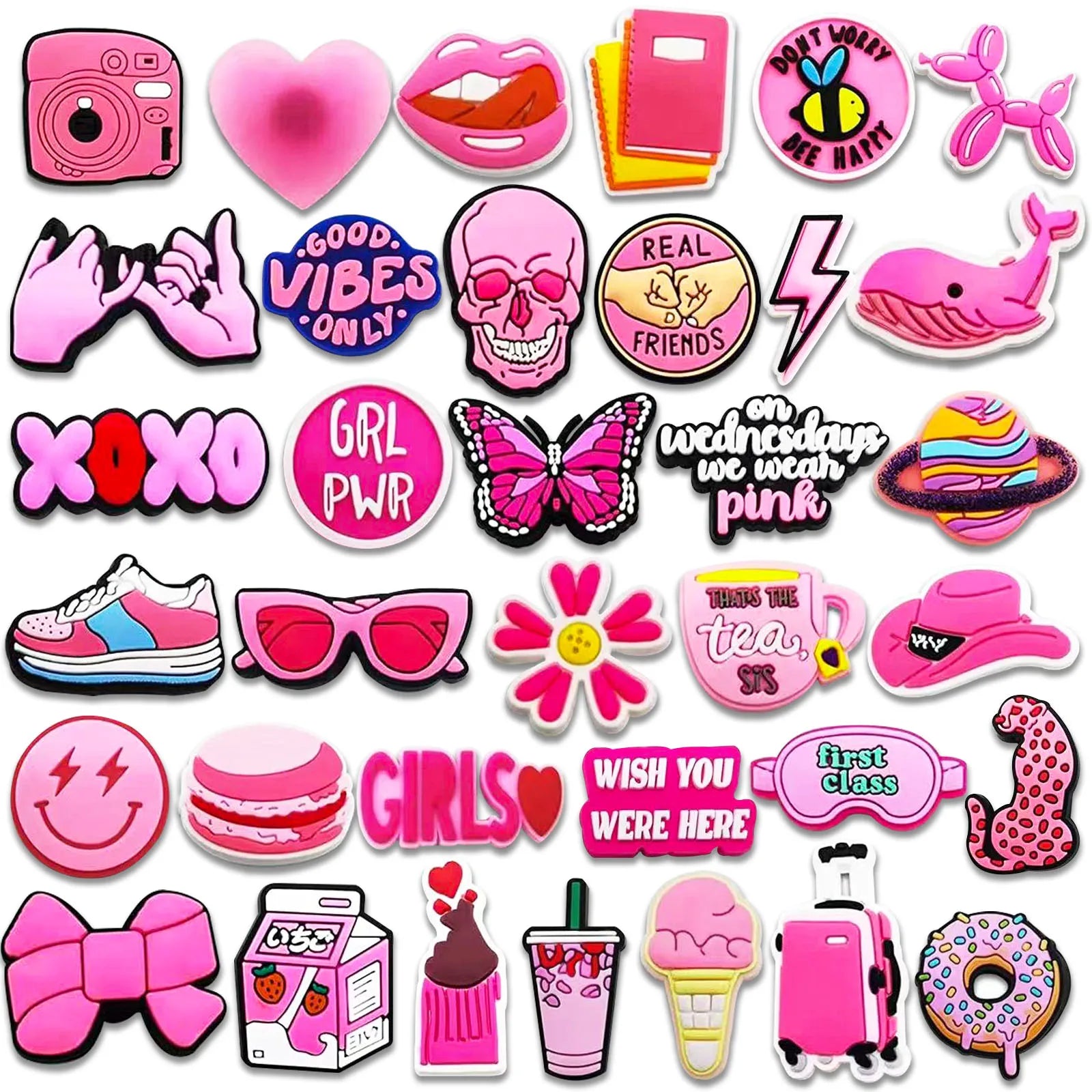 35Pcs Pink Series Shoe Charms For Clogs Shoe DIY Decoration Premium