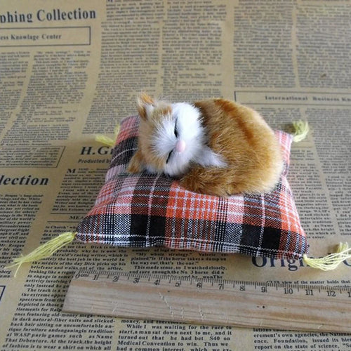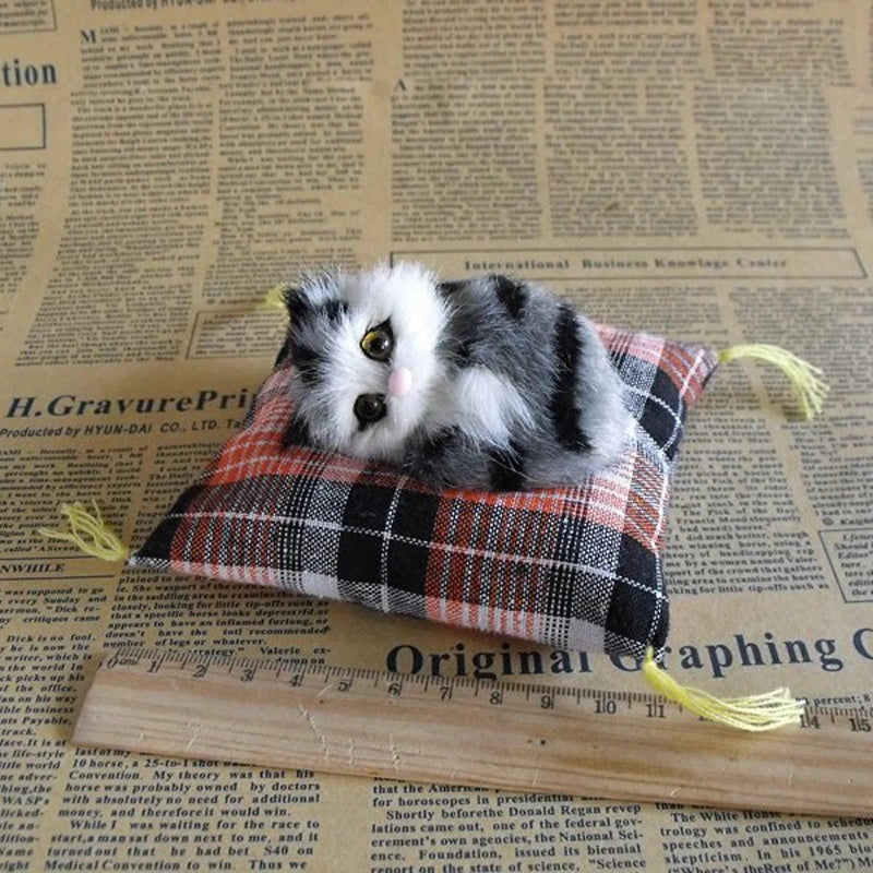 Artificial Mini Sleeping Cats on Cloth Pad Plush Simulation Lying Cats