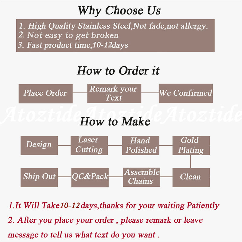 Atoztide Custom Personalized Name Bracelet Stainless Steel Charms