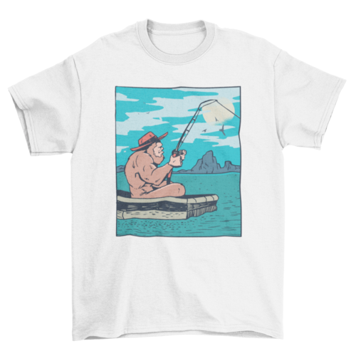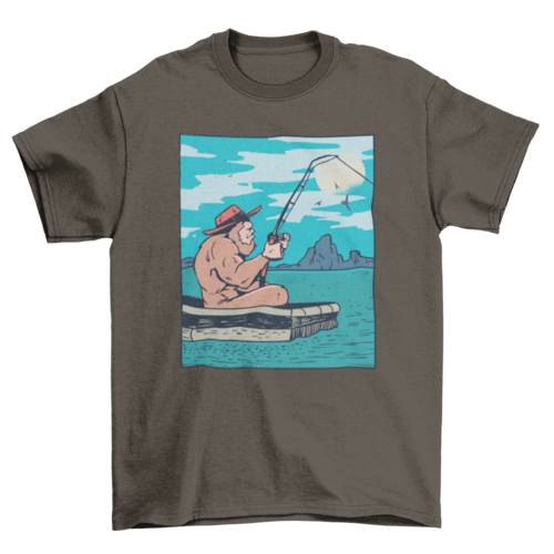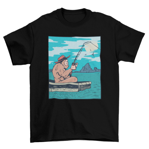 Cool t-shirt design featuring a bigfoot fishing illustration. Read more