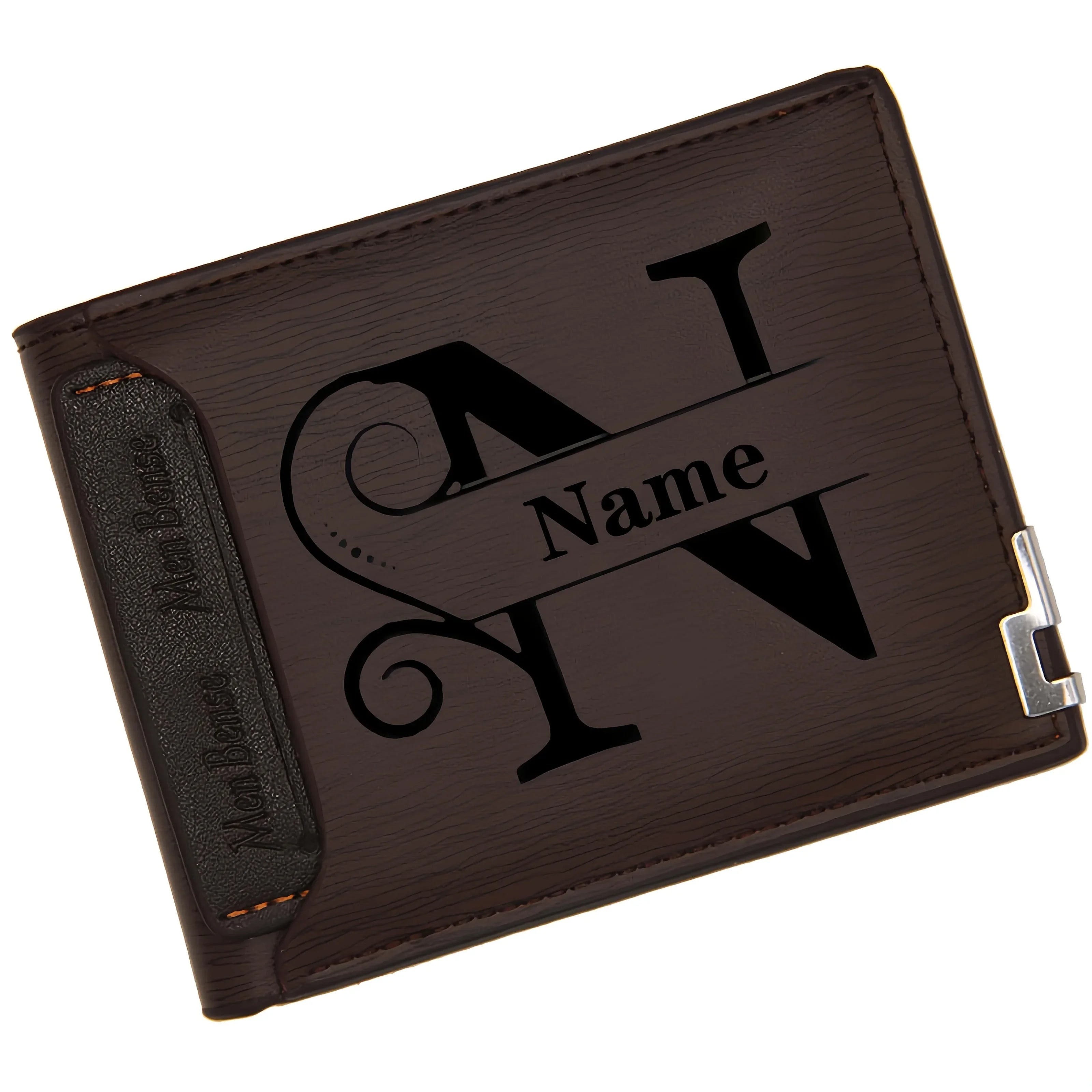 Custom Engraved Initials & Name PU Leather Wallet Men Gift for