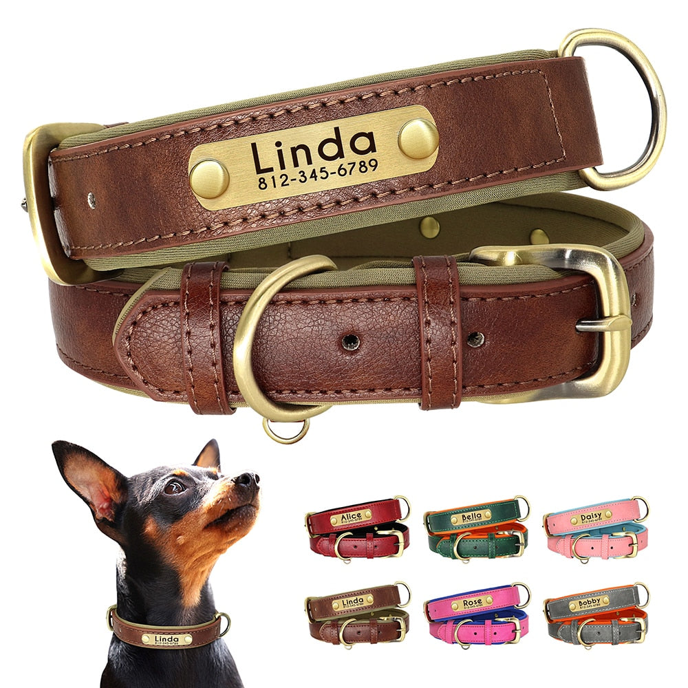 Custom Leather Dog Collar Soft Padded Dog Collars Personalized Pet ID