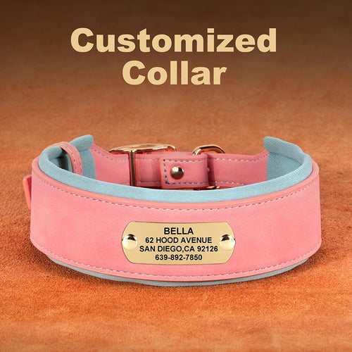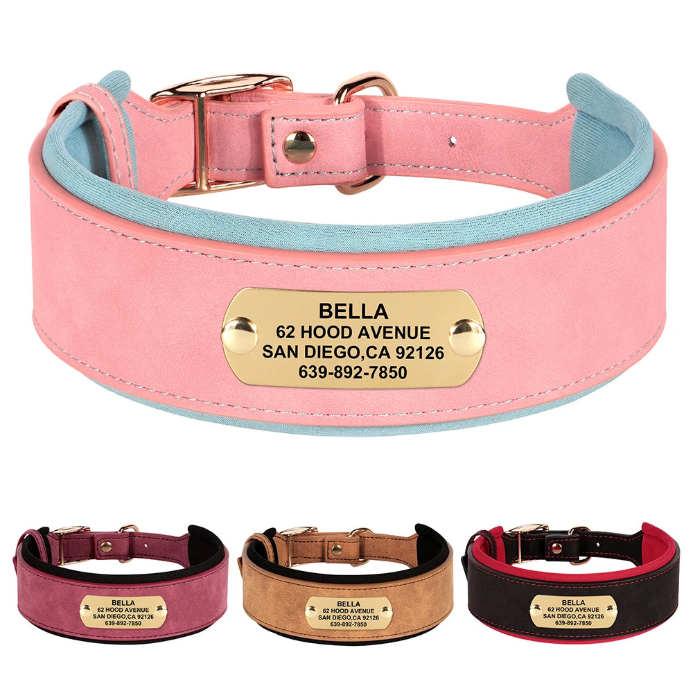 Customized Engraved Dog Collar Wide Leather Dog Collar Large Soft