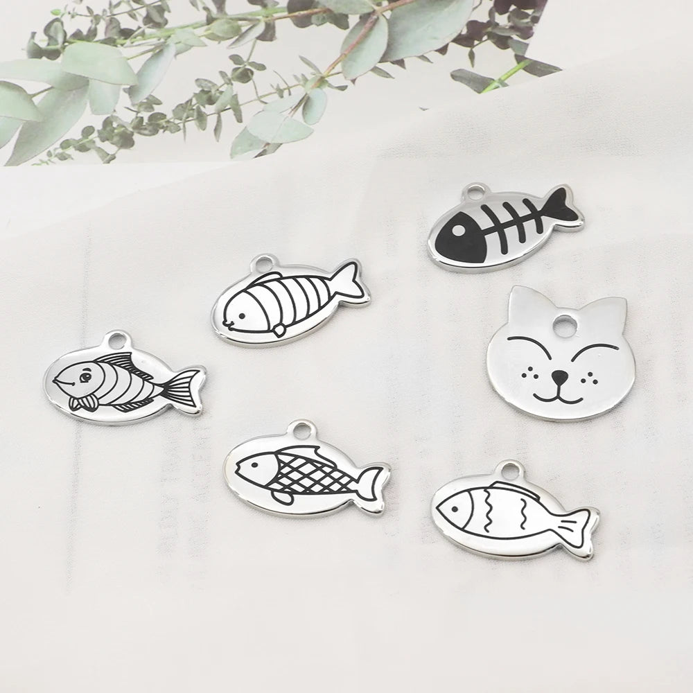 Cute Cat Tag Small Dog ID Tags Free Engraved Name Cats Kitten Name Tag Anti-lost Pet Collar Pendant Fish Shape&Cat... Read more