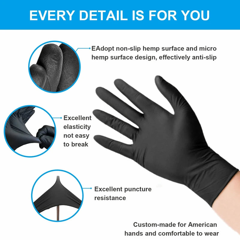 Disposable Nitrile Gloves Black Powder & Latex Free Cleaning Gloves