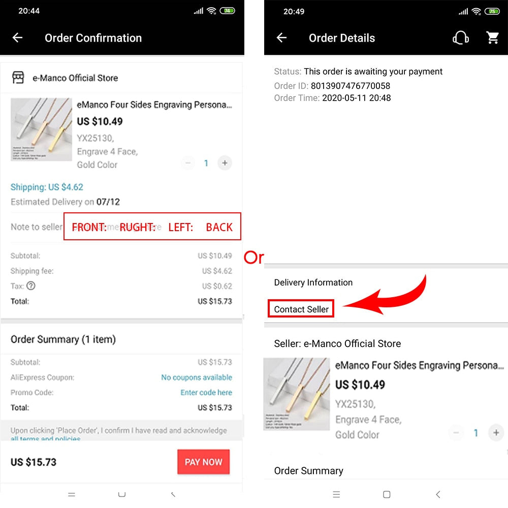 Emanco Four Sides Engraving Personalized Square Bar Custom Name