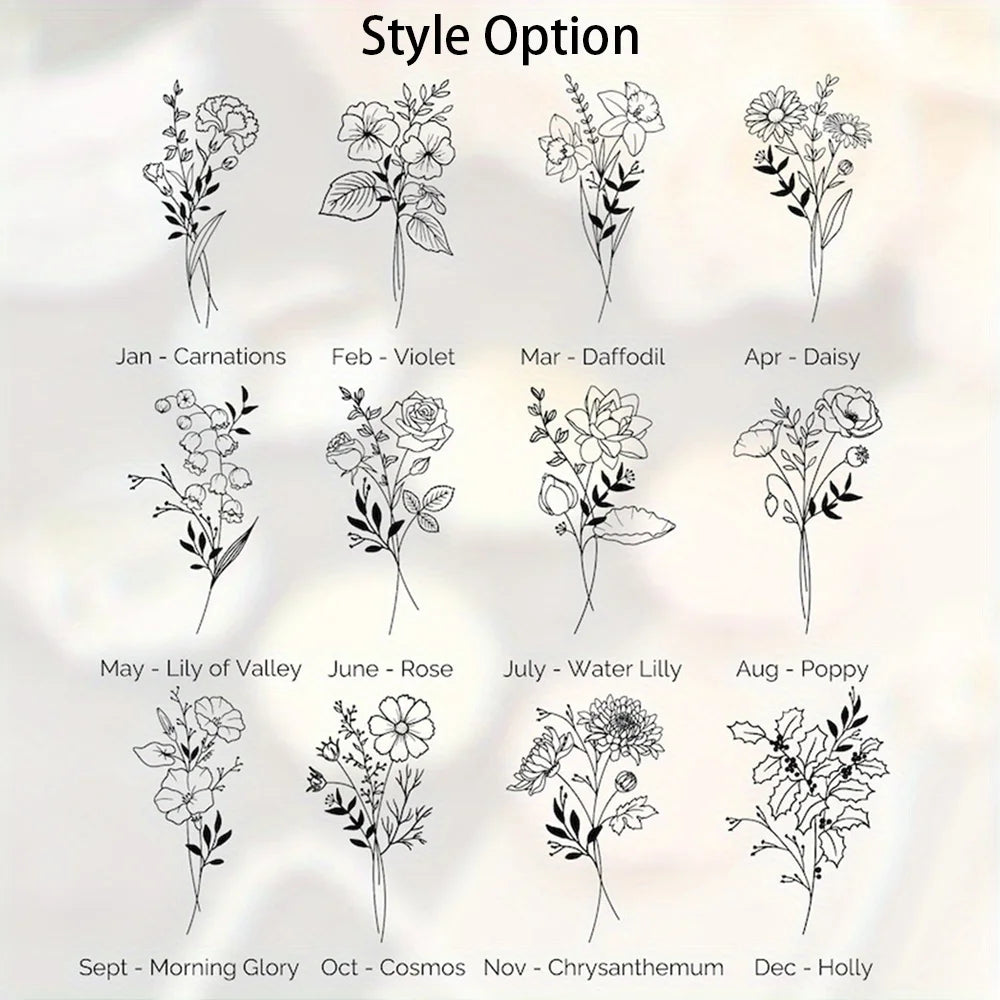 Engraved Compact Mirror with Birth Flower Design Elegant Portable