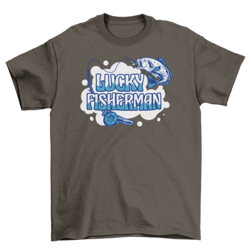 Fun t-shirt design that features a fish and a fishing rod with the quote "Lucky fisherman" Read more