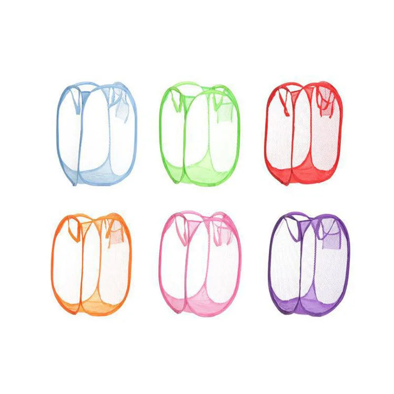 The mesh pop-up laundry basket features a folding design, this pop-up laundry basket can be twisted into a small size to help you save space. Large-capacity pop-up laundry basket, durable mesh laundry basket with a large opening that can easily accommodate more clothes, sporting goods, merchandise, toys, etc.