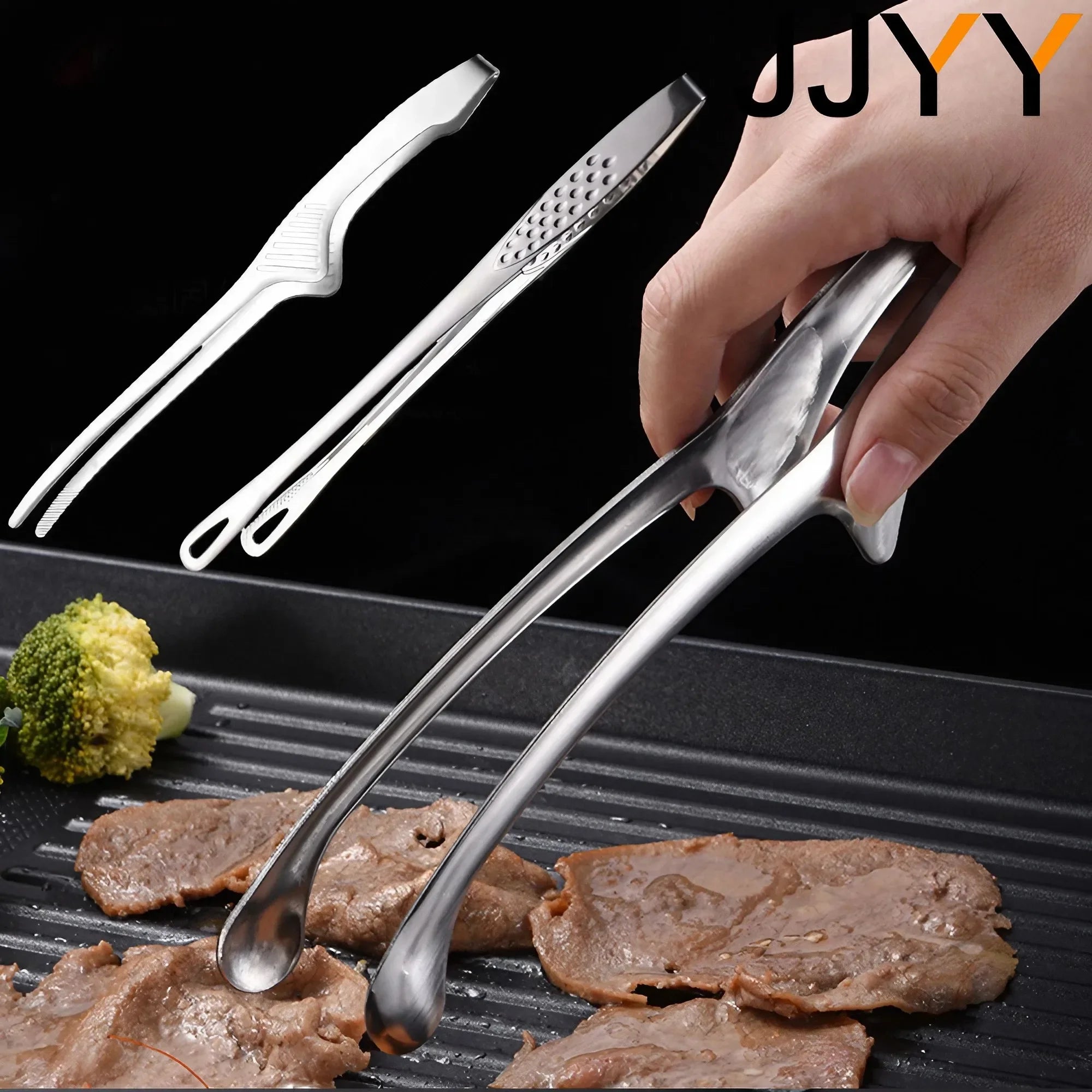 JJYY 304 Stainless Steel Food Tongs Long Handle Non-Slip Barbecue