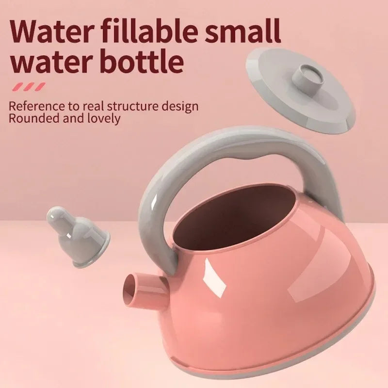 2. Funny: Realistic cooking set encourages imagination, dexterity, and creative play, Teaches your little ones to be mother's little helper. The kettle can be filled with water and the spout can be pulled out, A variety of fruits and vegetables can be freely combined to let children perceive colors and things in play.