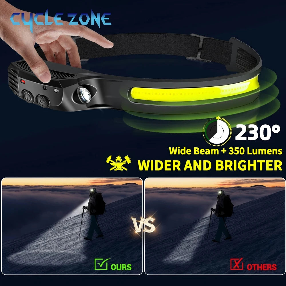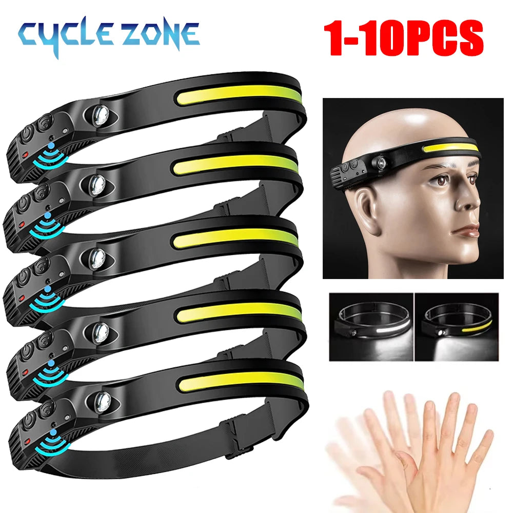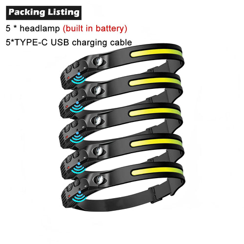 LED Sensor Headlamp Built-in Battery USB Rechargeable Head Flashlight
