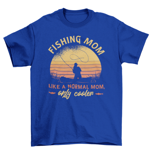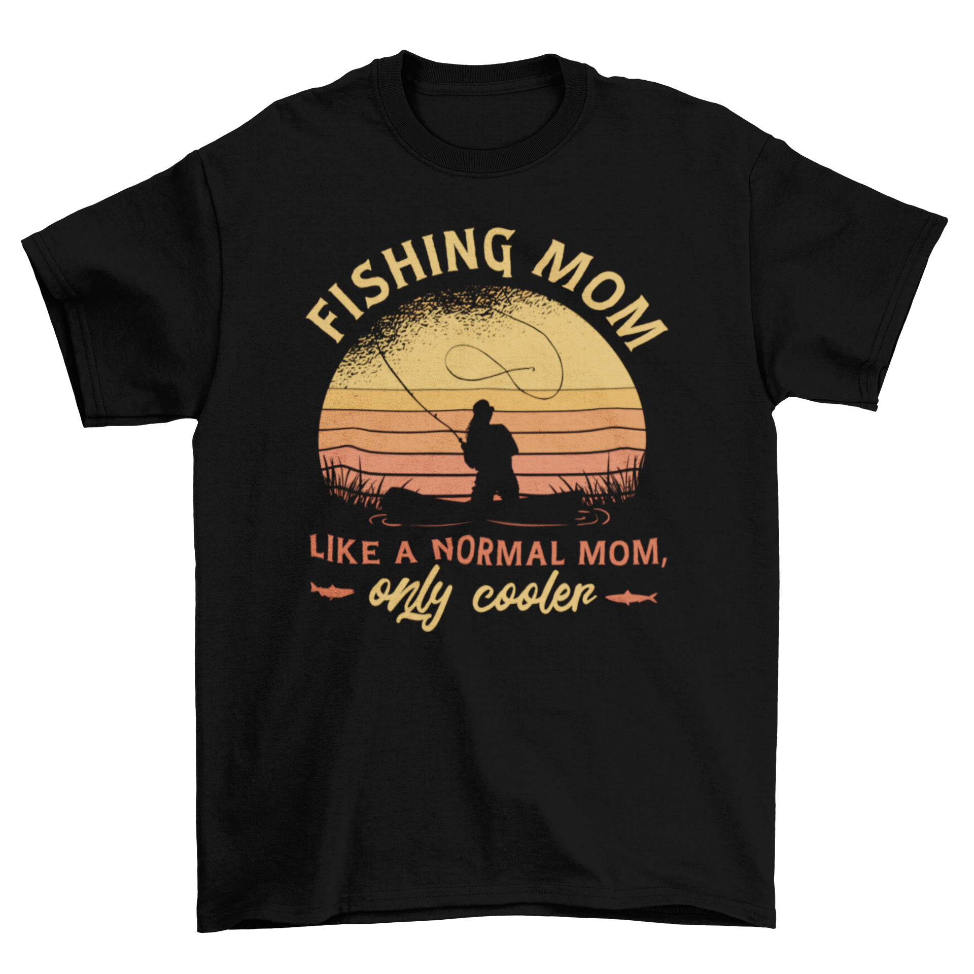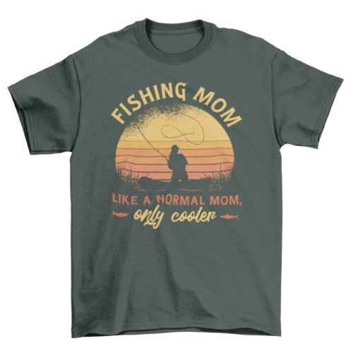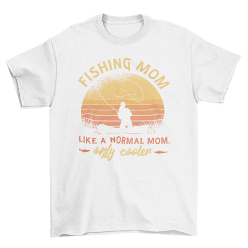 Fun t-shirt design of a woman fishing and the quote "Fishin mom, like a normal mom, only cooler". Read more