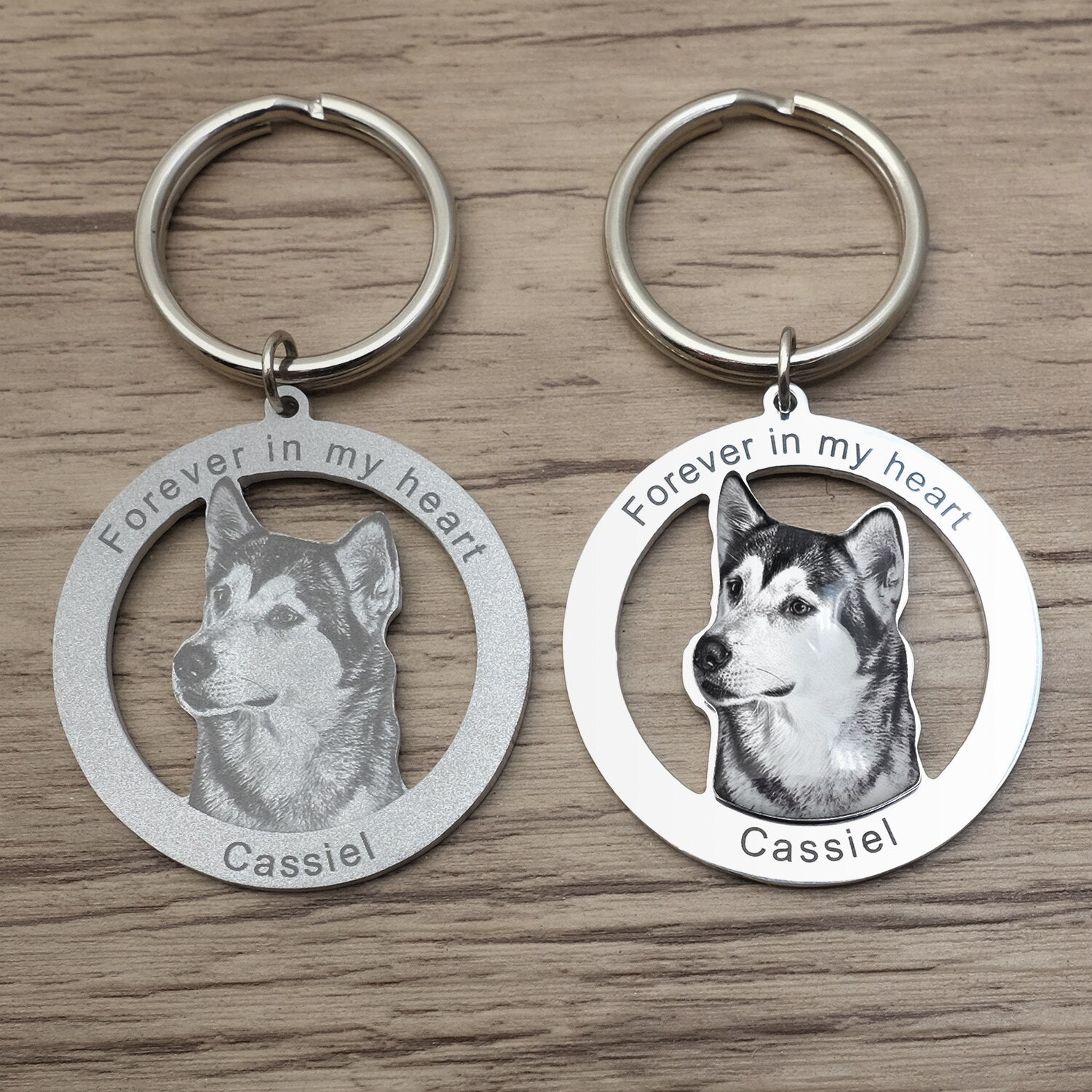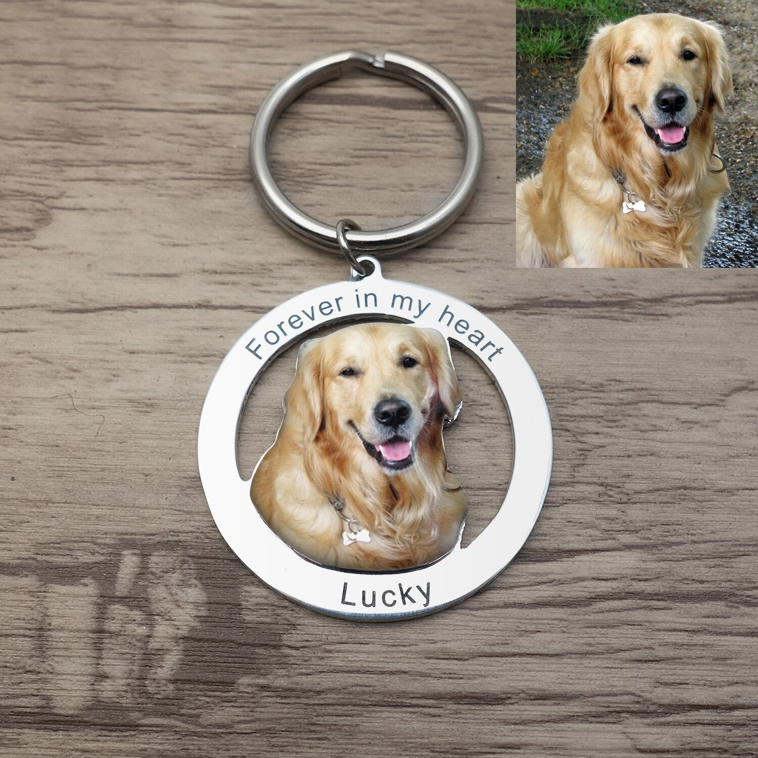 Personalized Pet Keychain Engraved Picture Keyring - Custom Photo