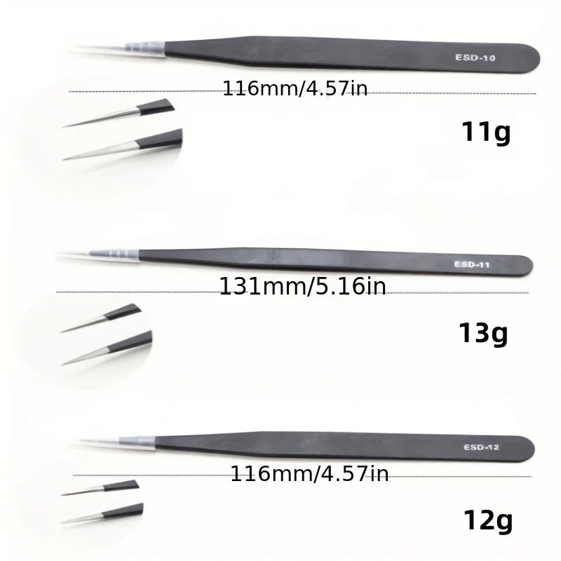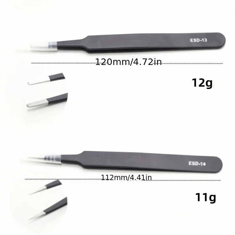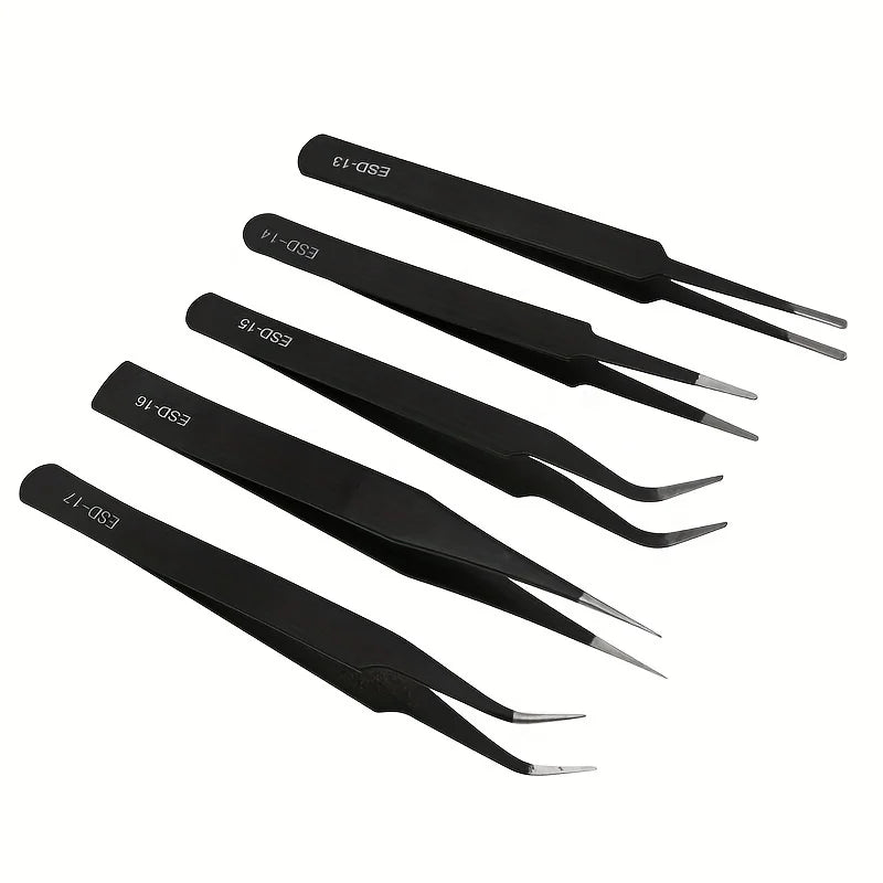 Precision ESD anti-static tweezers set -6-pc durable stainless steel