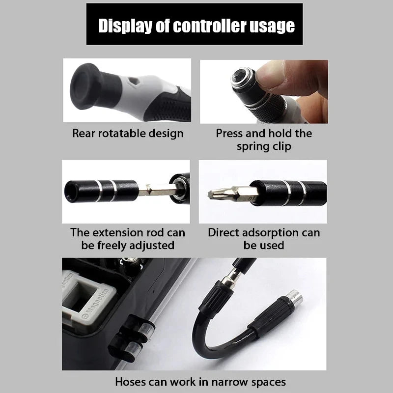 Equipped with 98 precision drill bits and 17 essential accessories, this 115-in-1 portable screwdriver set is your ideal choice for solving daily maintenance and precision operations. Whether it's household appliances, laptops, smartphones, or other electronic devices, it can easily cope.