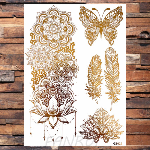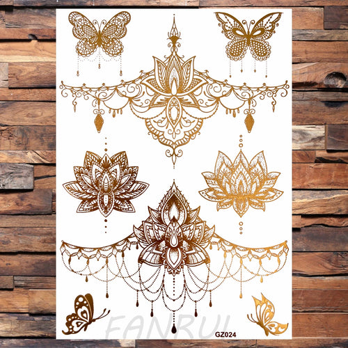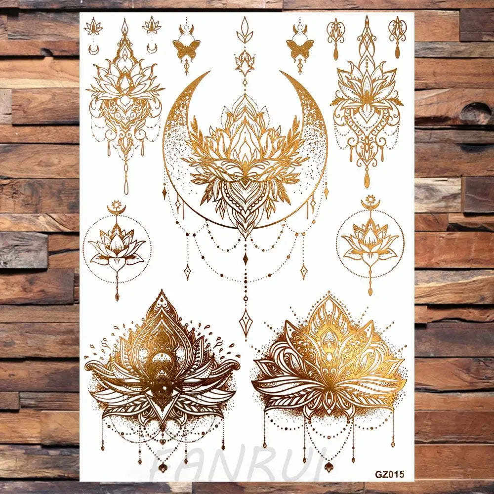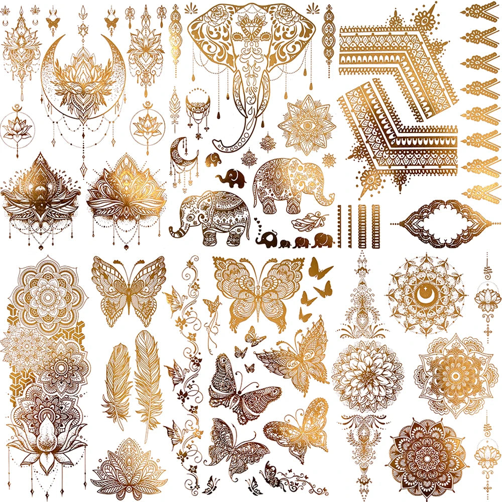 Hot Product Lists Realistic Elephant Moon Temporary Tattoos For Women Adult Fake Butterfly Lace Mandala Tattoo Sticker Gold Waterproof Chest... Read more