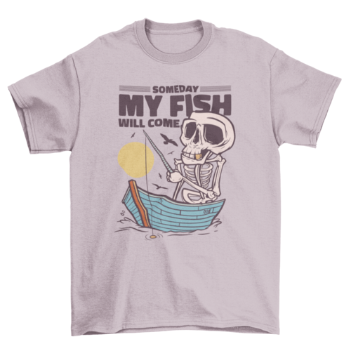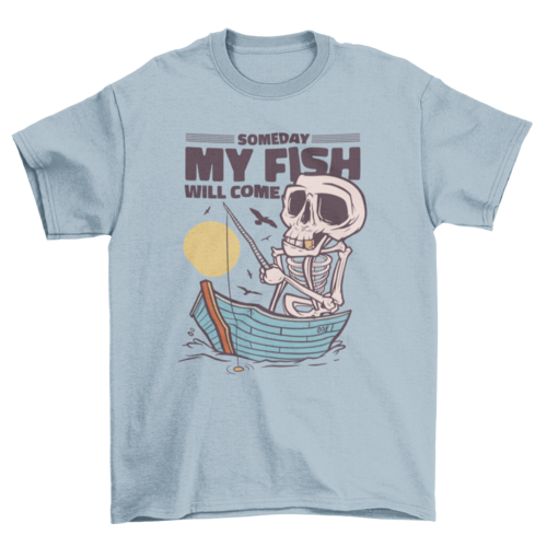 Amazing t-shirt design featuring a skeleton fishing with the quote "Someday my fish will come". Read more