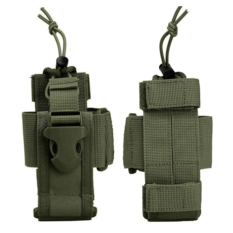 Multifunctional radio holder case, adjustable storage tools pouch; Adjustable size, two way radio holster; MOLLE System, easy to attached to MOLLE-webbed vests, rucksacks and belt Drainage hole;