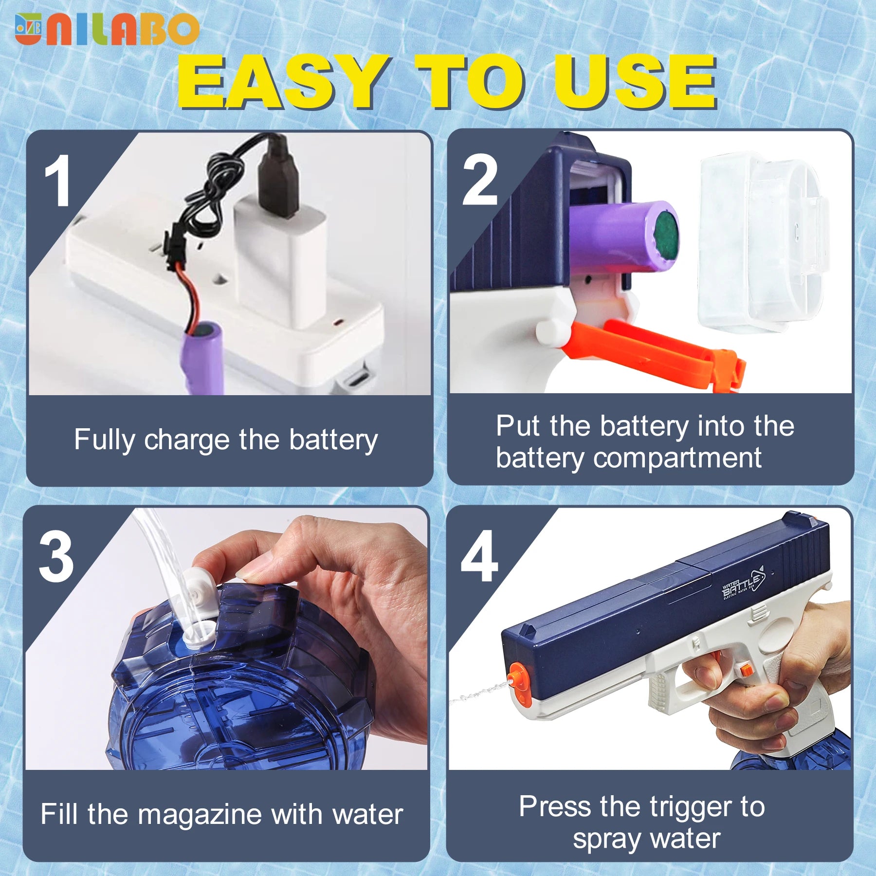 Unilabo Electric Water Gun, High-Powered Large Capacity Rechargeable,