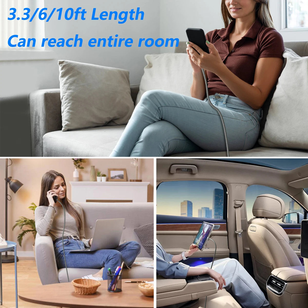 Perfect length means comfortable at home charging, allows you to move freely as charging your devices, charge your device in a comfortable position, and it is also easy to roll up if you don't need to use the extra length.