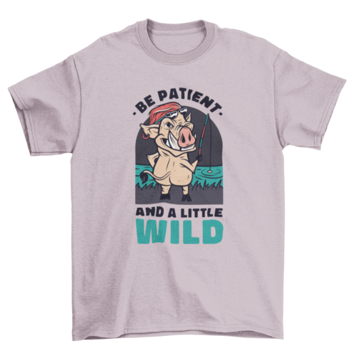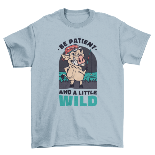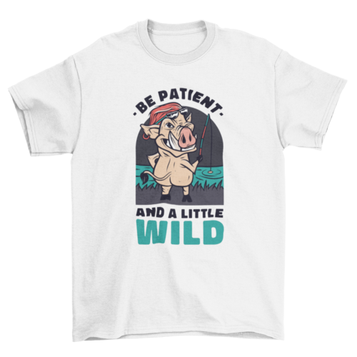 Amazing t-shirt design involving a wild boar fishing and the quote "Be patient and a little wild". Read more